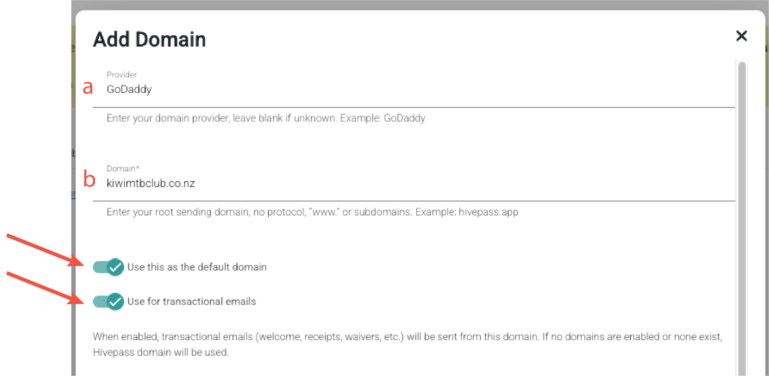 - Select whether you want to use this domain for transactional emails - such as receipts, renewal reminders and other important member notifications.