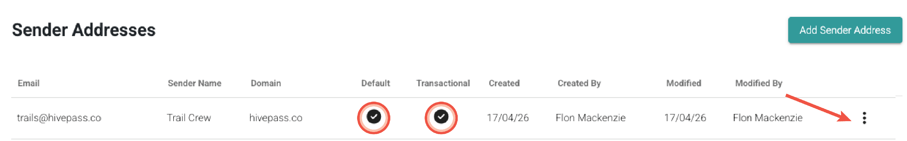 - This sender can be set as the Default using the three dots menu at the right hand side