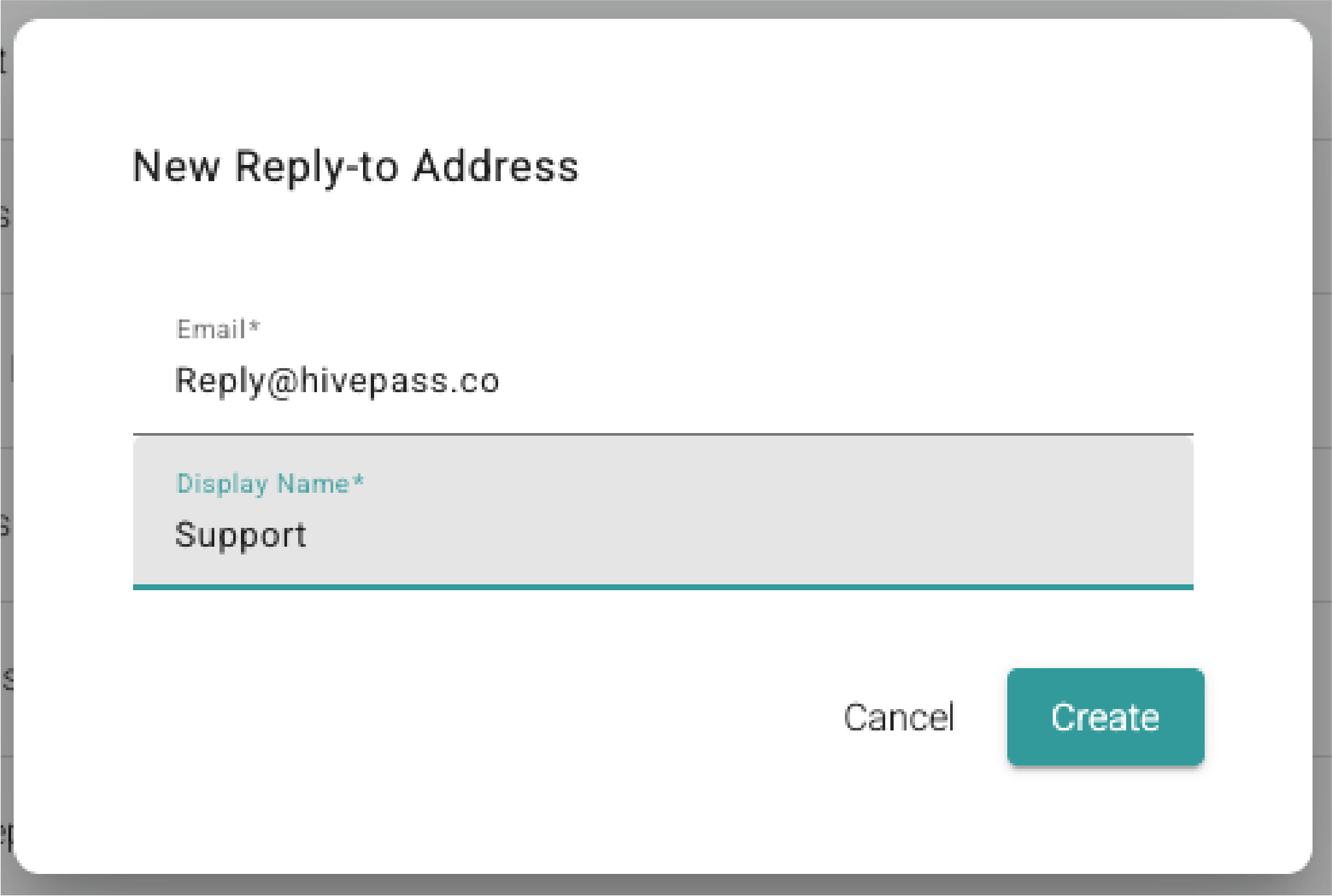 - Enter the email and display name. e.g: Email: reply@hivepass.co. Display name: Support.