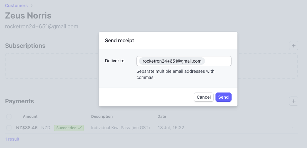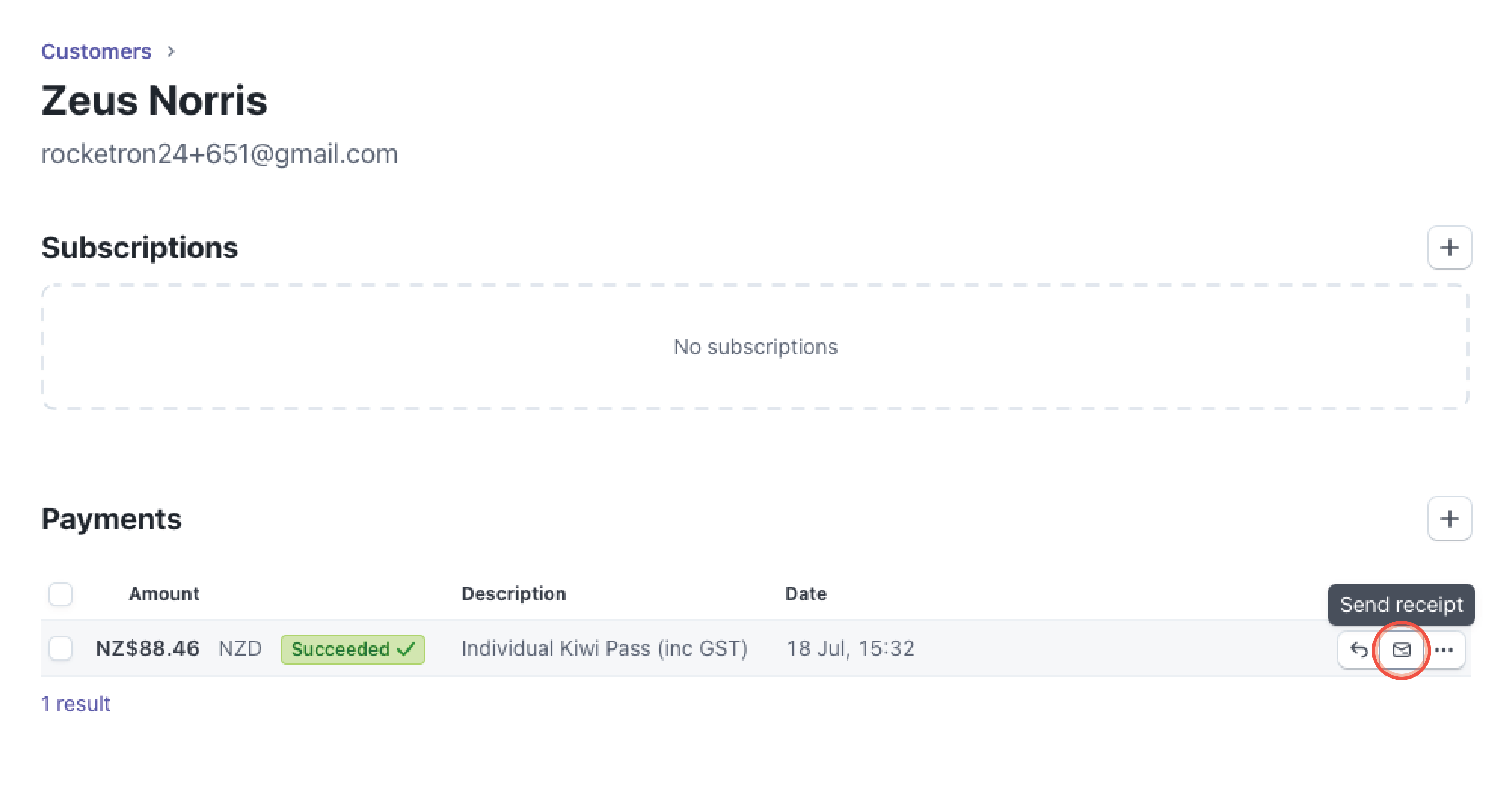 - At the right hand side, hover over the ellipses to bring up the ‘Send receipt’ option