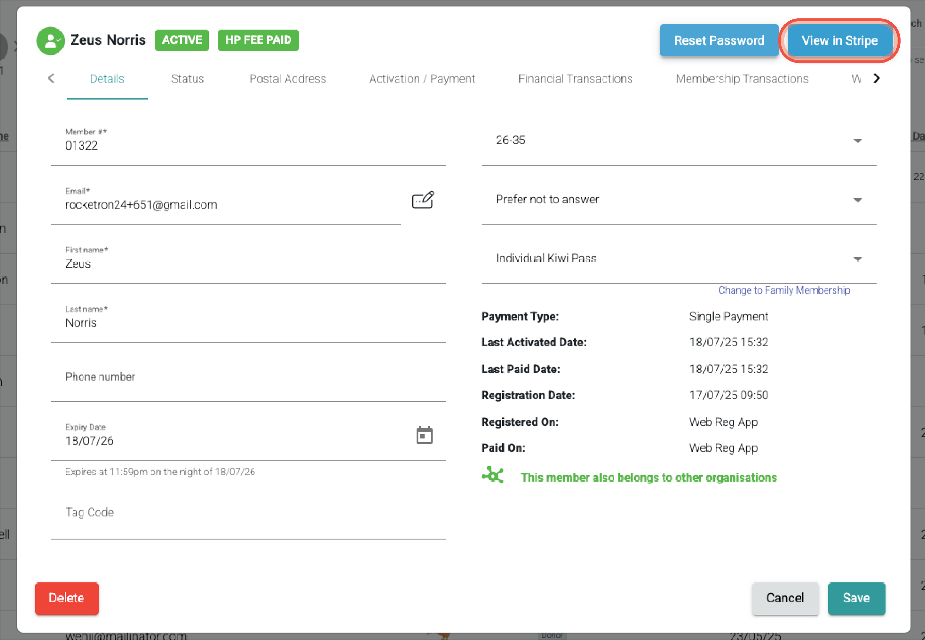 ☝️ If the membership is a family, the receipt will be sent to the primary family member only.