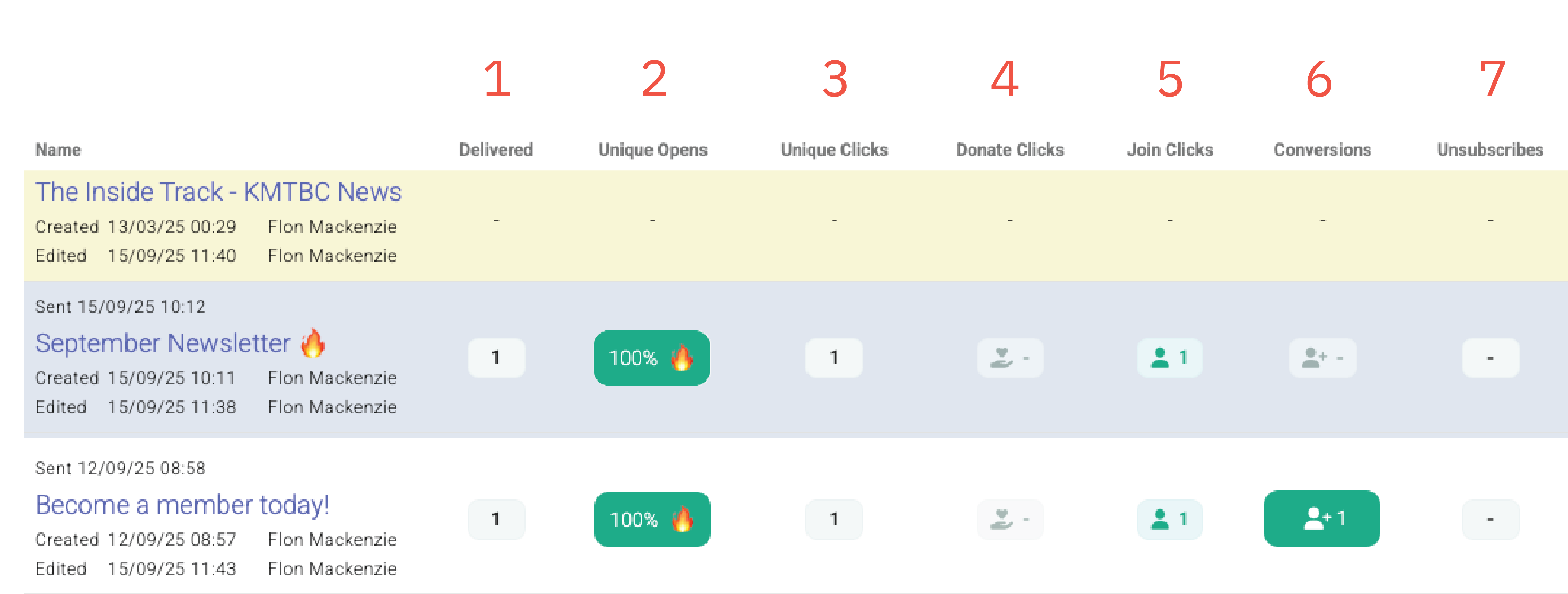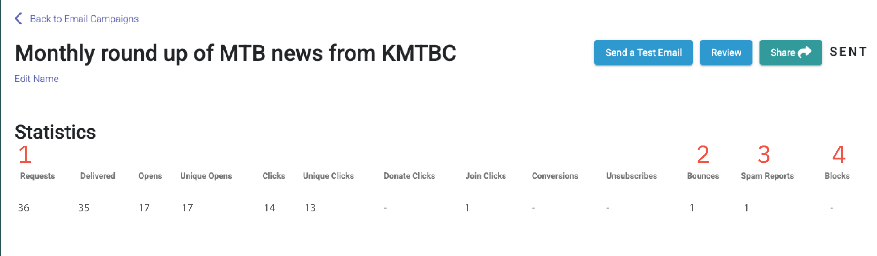 π‘ The conversion statistic can be particularly helpful when running a membership drive email campaign.