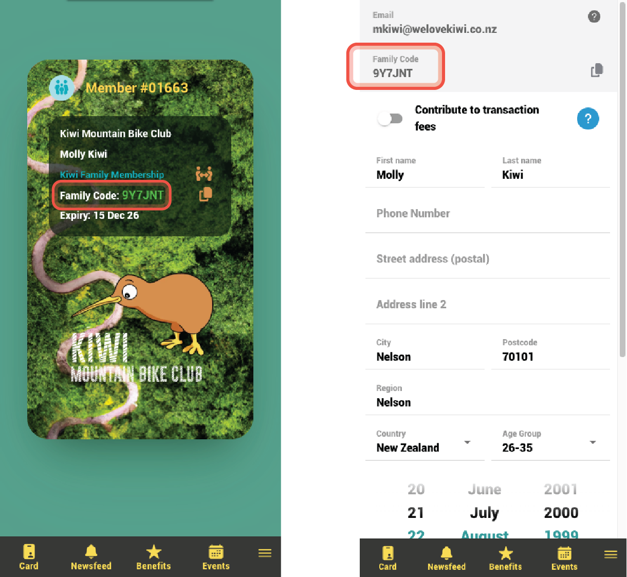 Example: Molly Kiwi has signed up their family in Hivepass. They are the Primary family member.