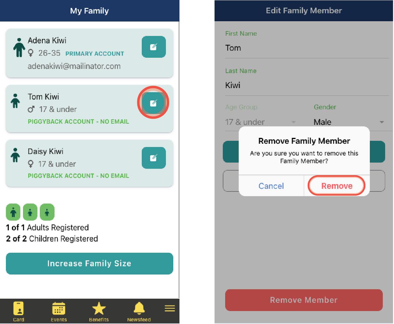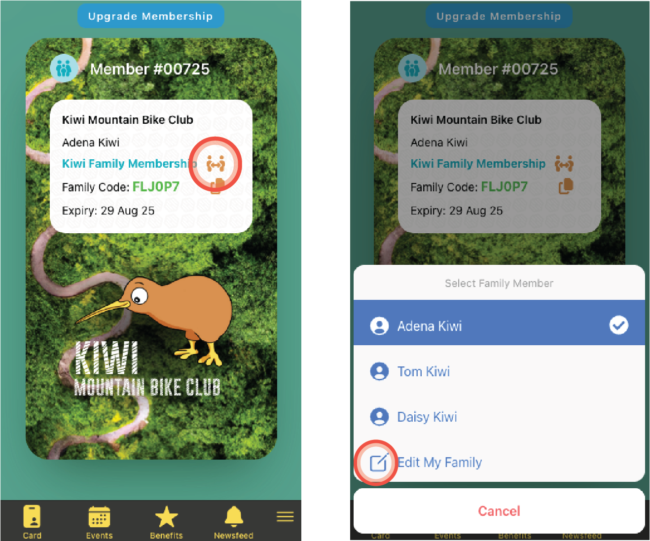 - Logged in as the primary family member, select the family icon on the digital card screen, then Edit my family from the pop up menu