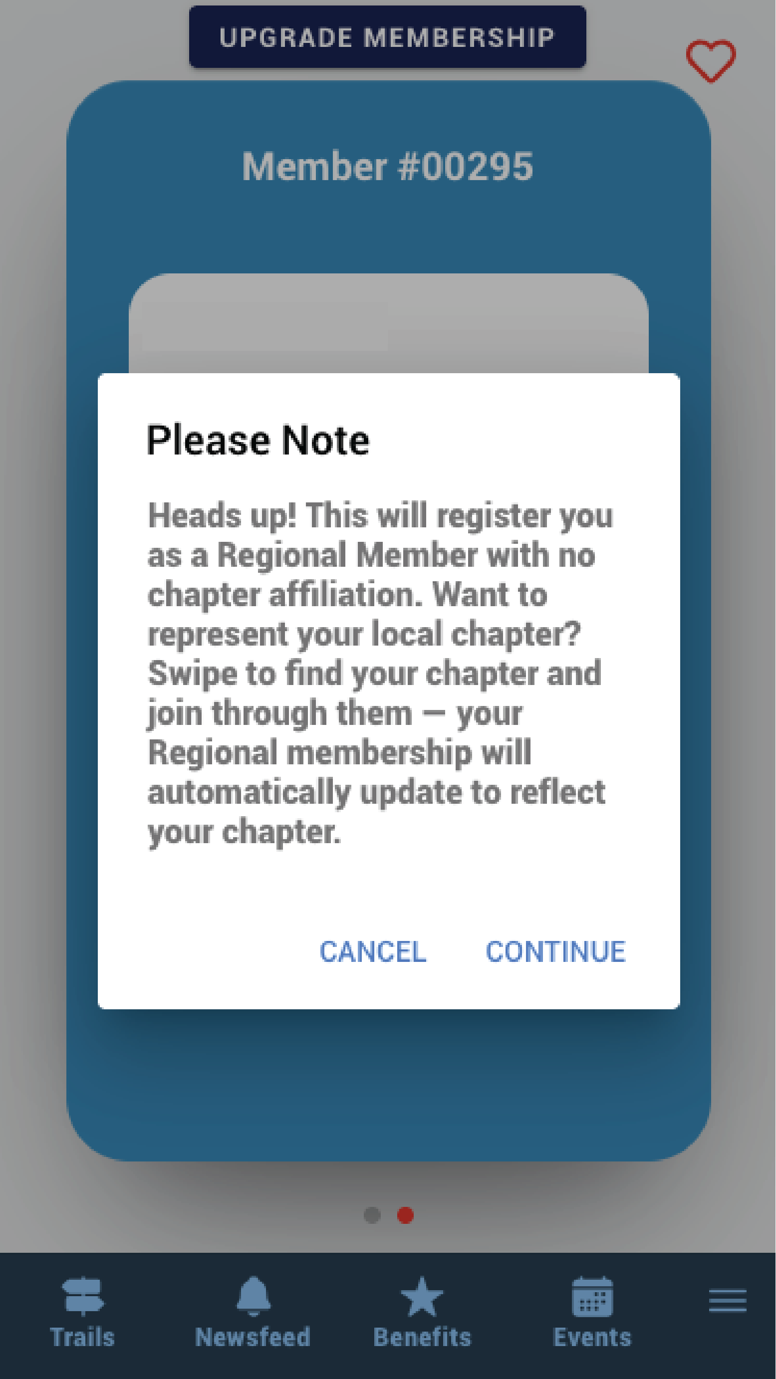 Parent and chapter organisations can configure a popup prompting the user to confirm their selection.