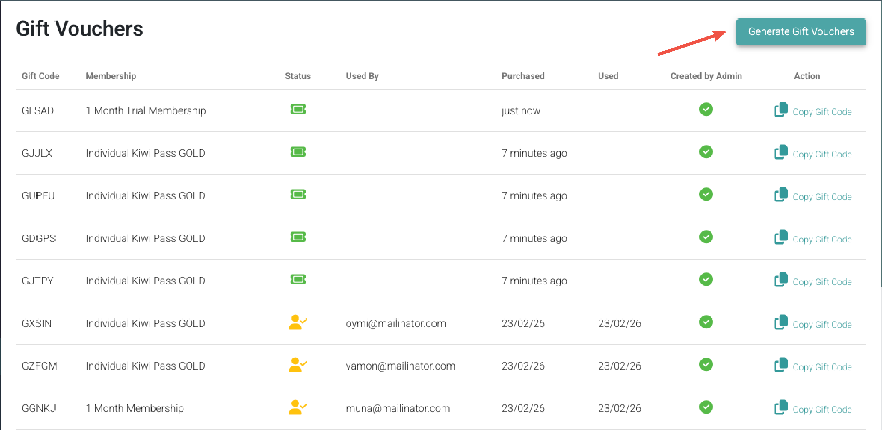a) Under the Members list, (Community > Contacts) a gift voucher icon will show under Attributes, if this member used a gift code to activate their membership. Hover on the icon to see the unique code.