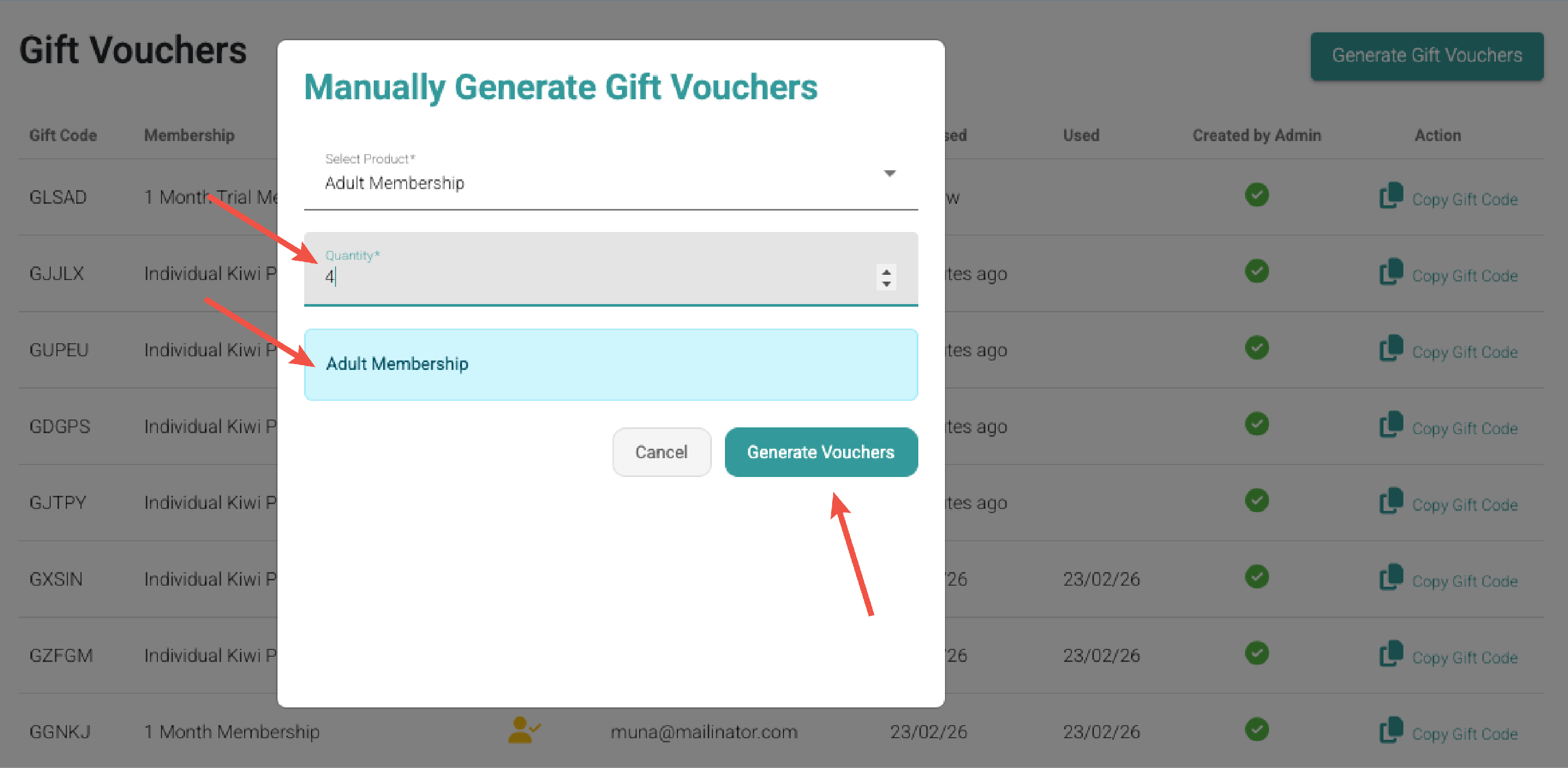 💡 Tip: If you select a quantity of 4, this will generate x4 unique gift codes.